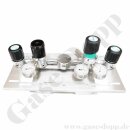 Batteriedruckminderer Entspannungsstation Druckregelstation - halbautomatische Umschaltung - 200 bar - 10 bar fest - 1-stufig - 2 Eingänge 1/4" NPT IG - Ausgang 1/4" NPT IG - mit Absperrventil im Eingang - Messing verchromt 6.0 - GCE Druva MPLH0SSS00