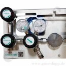 Batteriedruckminderer - halbautomatische Umschaltung - 200 bar - 14 bar fest eingestellt - 1-stufig - 2 Eingänge N 1/4" IG - Ausgang 1/4" NPT IG - mit Induktivmanometer + Eigengasspülung - EPDM - Messing verchromt 6.0
