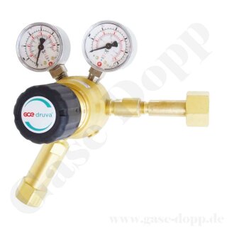 Bündeldruckminderer Inertgas CO2 200 bar 1-stufig bis 50 bar regelbar - Anschluss W21,8x1/14" IG ÜM DIN 477-1 Nr.6 - Ausgang G 3/8" AG - 100 m²/h - Messing - Kugelhahn - GCE Druva CTMHESJ
