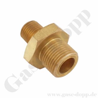 Doppelnippel M19x1,5 LH AG x 1/4" NPT AG - Adapter Prüfgas DIN 477-1 Nr.14 - 200 bar - Messing