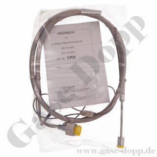 Edelstahlwellschlauch DN6 200 bar - DIN 477-1 Nr.10 - W24,32 x 1/14" x 1/4" NPT AG - Sechskantanschluss- Stickstoff - mit Fangleine - Gasreinheit 6.0 - Länge 1,5 m