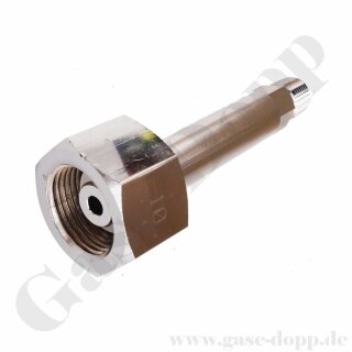 Flaschenanschluss Stickstoff DIN 477-1 Nr.10 - W24,32x1/14" x 1/4" NPT AG - 200 bar - Sechskantanschluss - Länge 90 mm - Messing verchromt