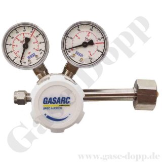 Flaschendruckminderer Helium 200 bar 1-stufig bis 50 bar regelbar - Anschluss W21,8x1/14" DIN 477-1 Nr.6 - Ausgang 6 mm KRV - Messing vernickelt 6.0 - GASARC SPEC MASTER HPS621