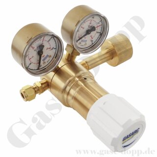 Flaschendruckminderer Stickstoff 300 bar 1-stufig bis 250 bar regelbar - HandAnschluss W30x2" DIN 477-54 Nr.54 - Ausgang 1/4" NPT IG - Messing 4.5 - GASARC TECH MASTER GPS421