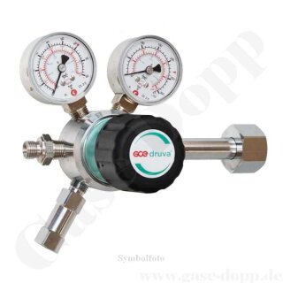 Flaschendruckminderer Stickstoff Italien UNI 4409 / UNI5 - 200 bar 1-stufig bis 50 bar regelbar - Anschluss W21,7x1/14" AG UNI 4409 / UNI5 - Ausgang G 1/4" AG konischdichtend - Messing verchromt 6.0 - GCE Druva CPLH0SJ