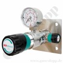 Labor Entnahmestelle auf Wandplatte mit Absperrventil - 40 bar - bis 6,0 bar regelbar - Eingang 6 mm KRV oben - Ausgang 6 mm KRV unten - FKM - Messing verchromt - GCE DRUVA EMD 40006