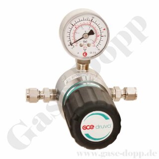 Leitungsdruckminderer bis 10 bar regelbar - Eingang max. 60 bar Rechts - 1-stufig - IN / OUT 12 mm KRV - 4 Port - ohne Sicherheitsüberdruckventil - Messing verchromt 6.0 - GCE Druva LPLH0SF