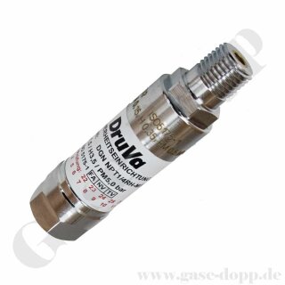 Sicherheitseinrichtung Flammenrückschlagsicherung Acetylen / Wasserstoff / Sauerstoff - IN 1/4" NPT AG / OUT 1/4" NPT IG - max. 15 bar - Messing CR - GCE Druva FS500 B000096